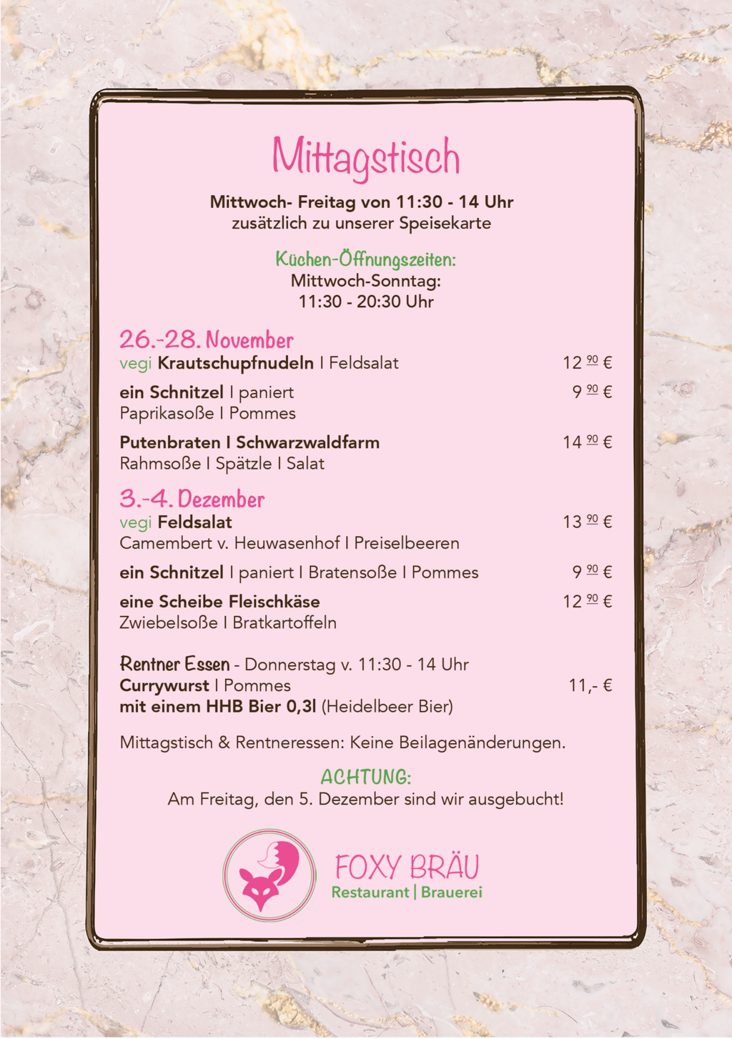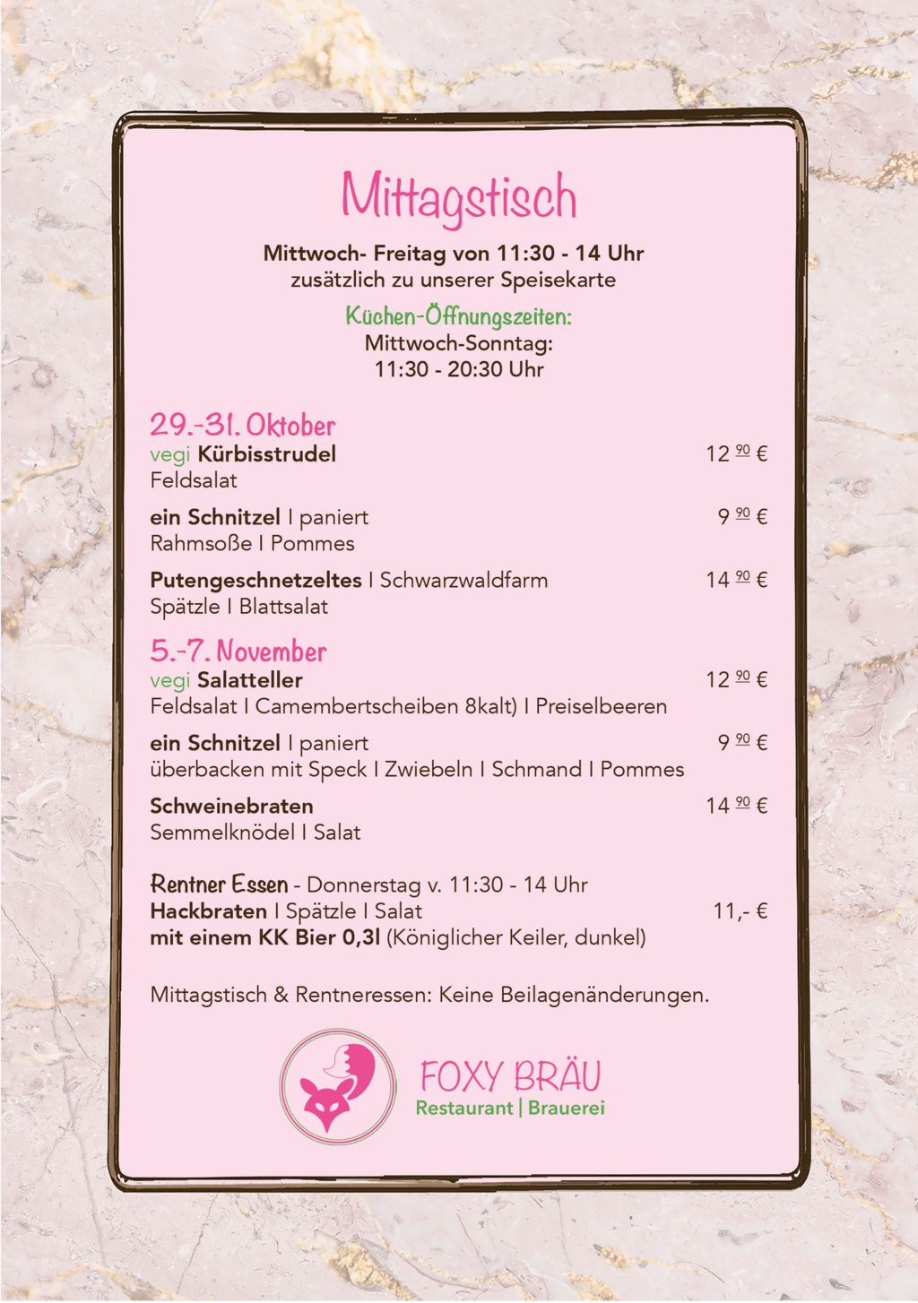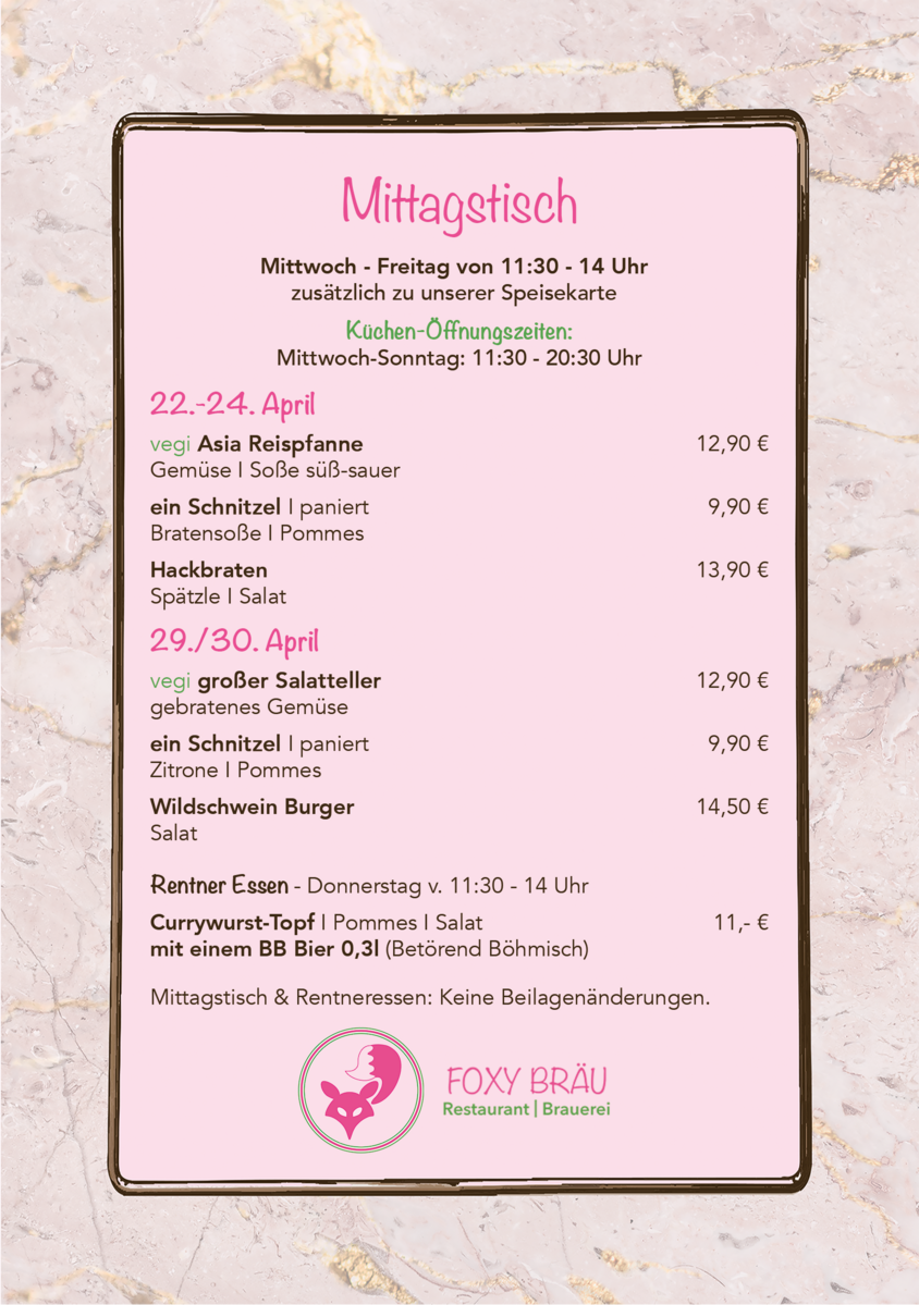 Mittwoch & Donnerstag I Sonntag & Feiertag