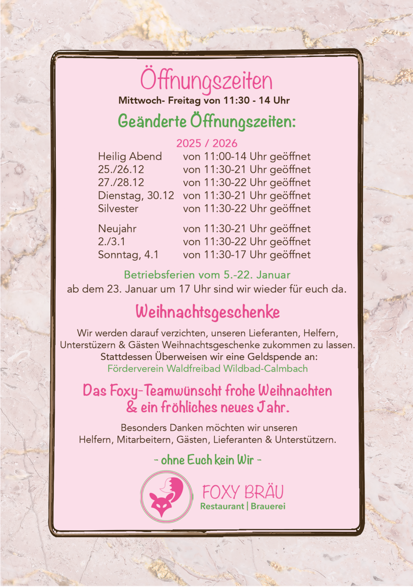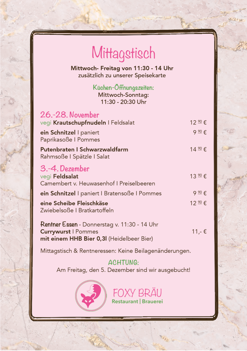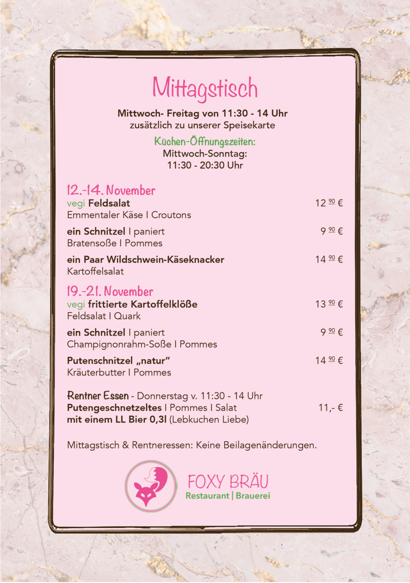 Mittwoch & Donnerstag I Sonntag & Feiertag
