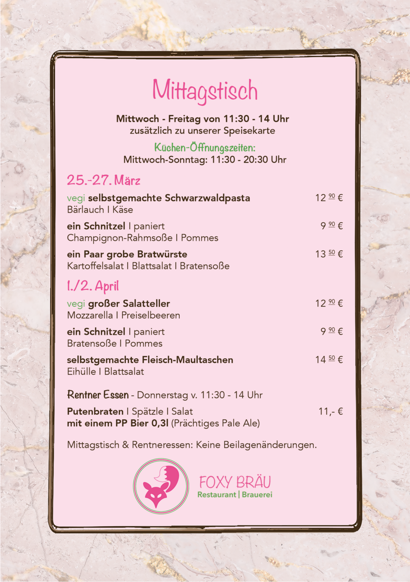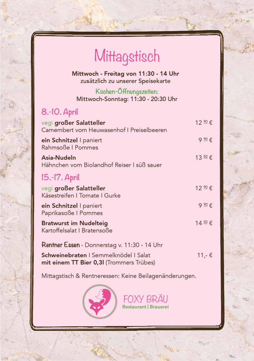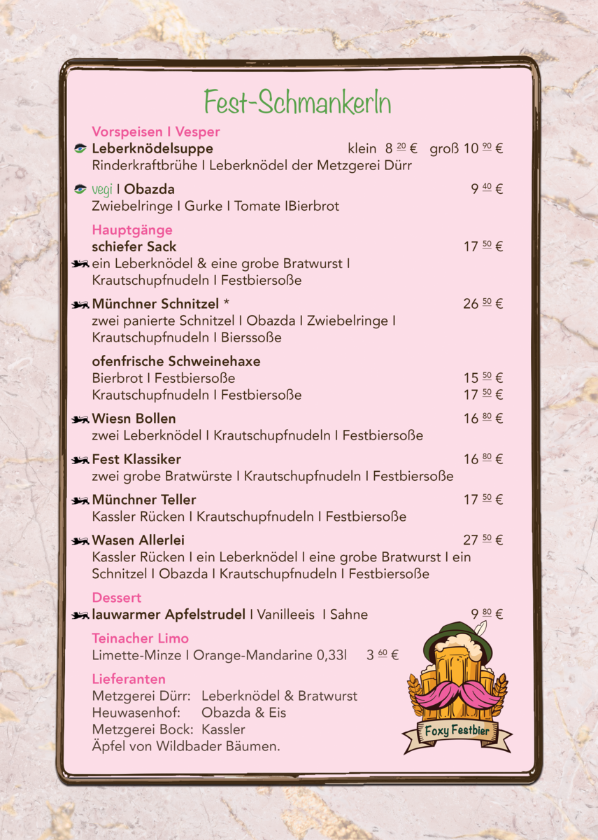 Zusätzlich zu unserer Speisekarte.