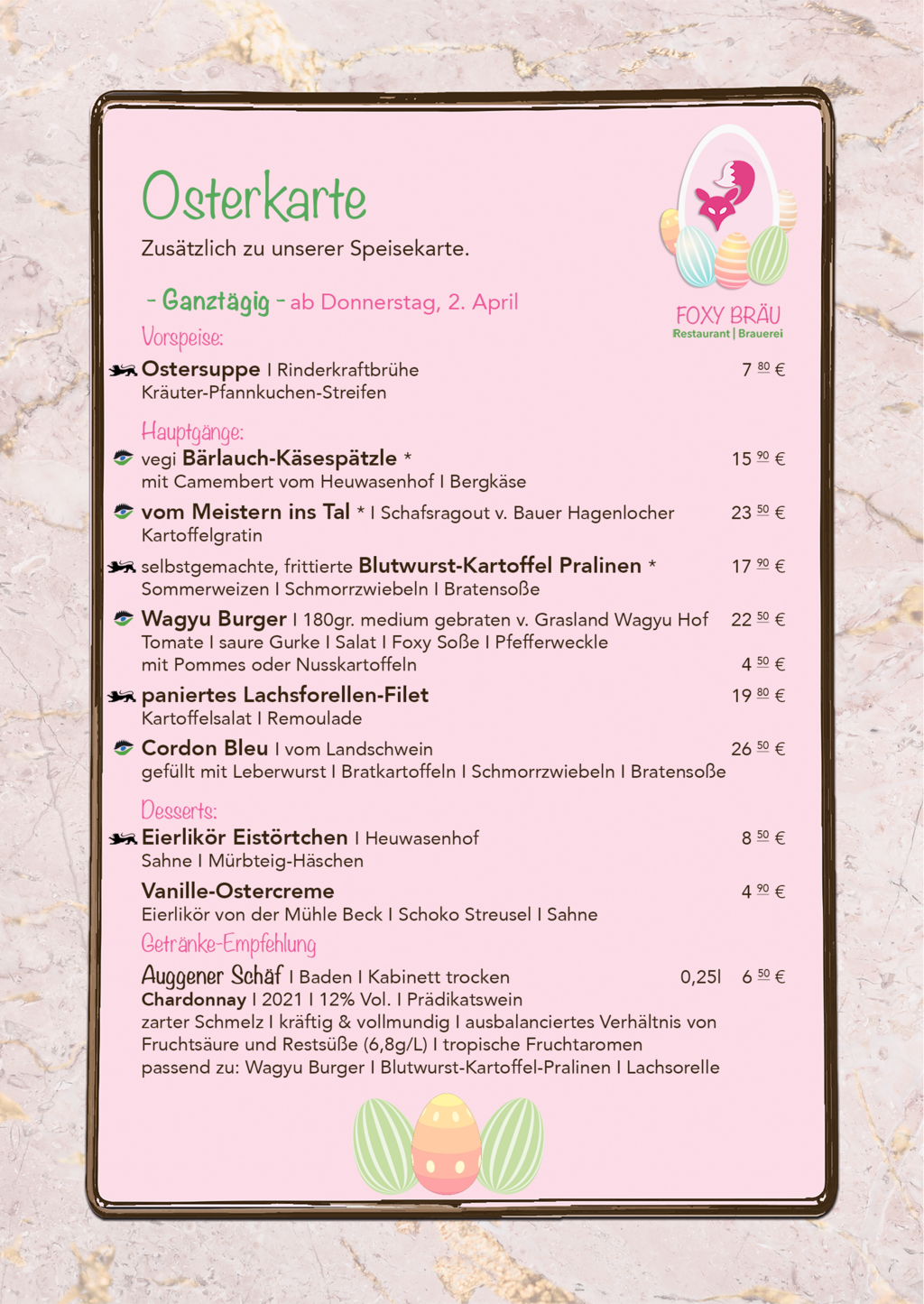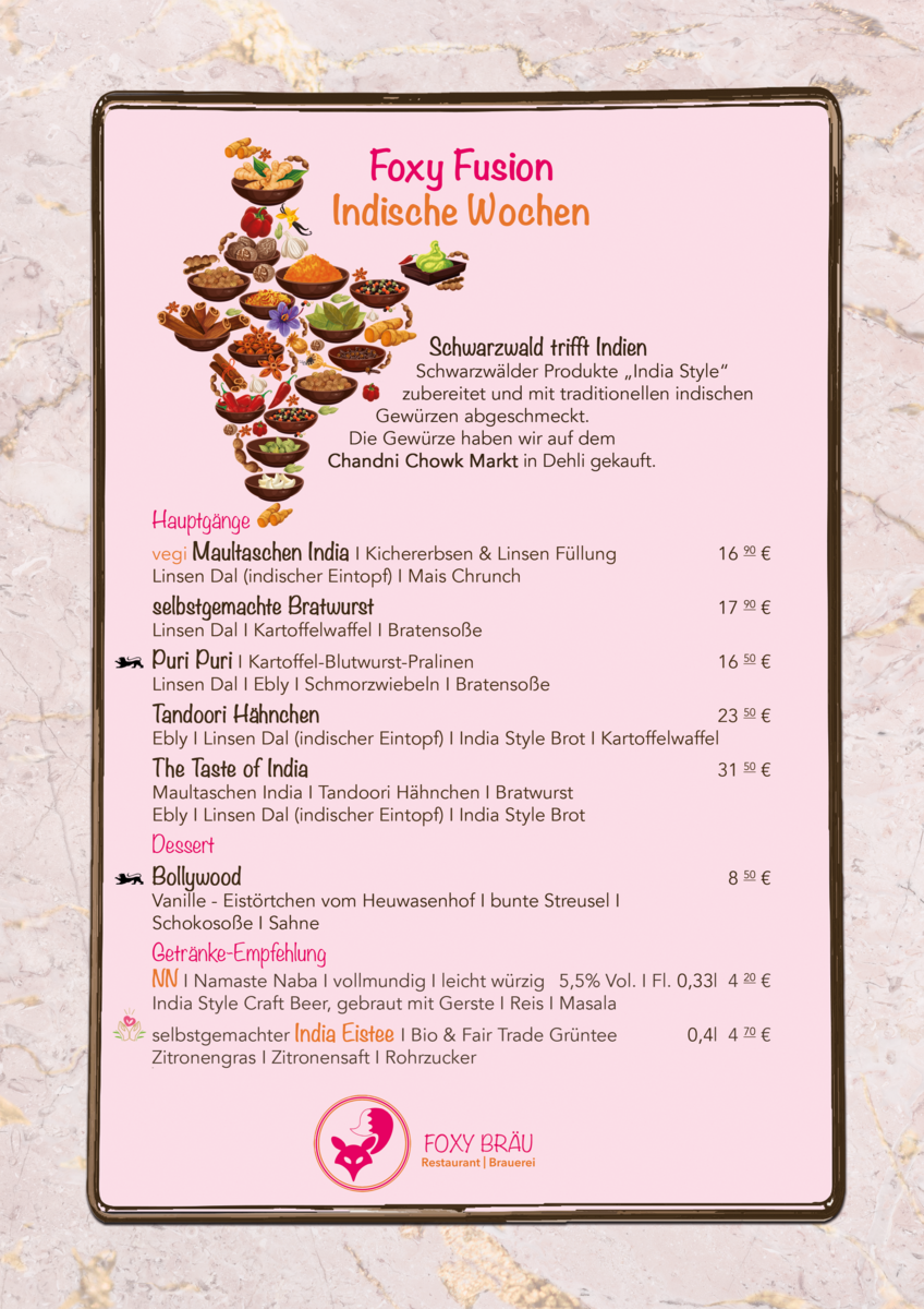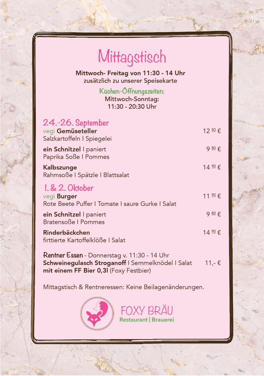 Zusätzlich zu unserer Speisekarte.